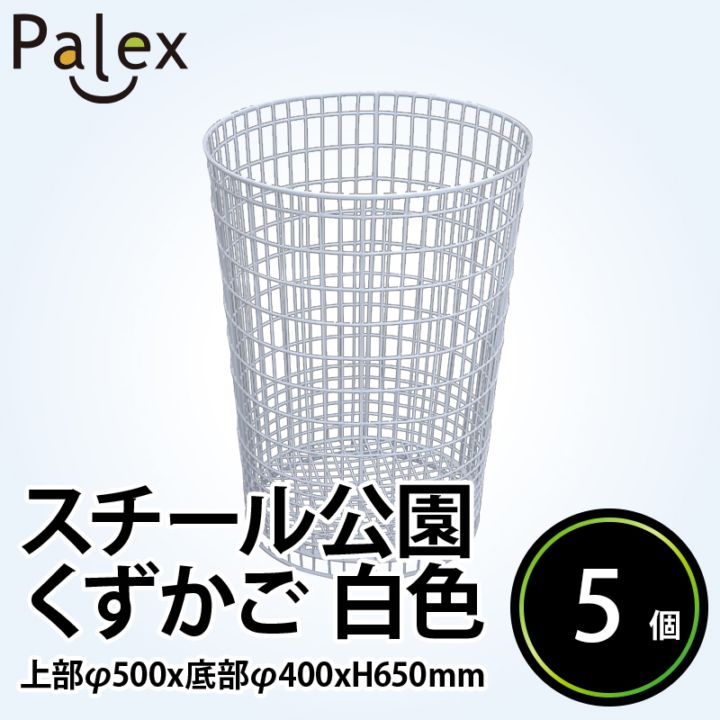 スチール公園くずかご 白色 投入部φ500×底部φ400×H650mm 5個入